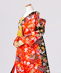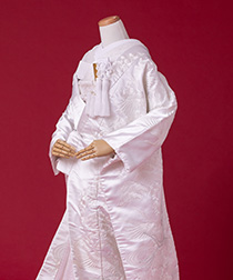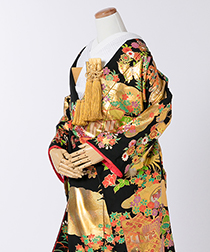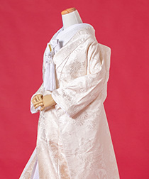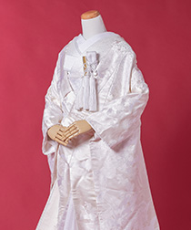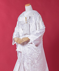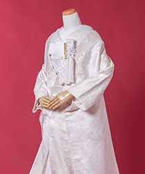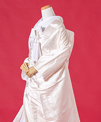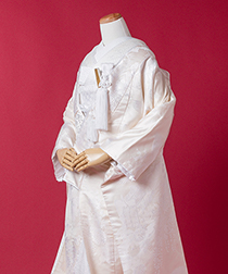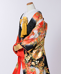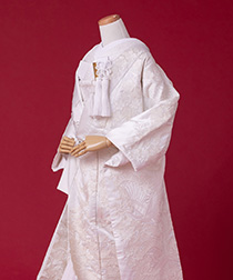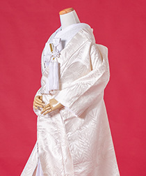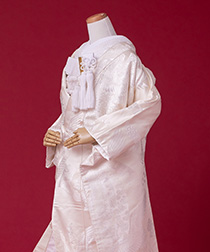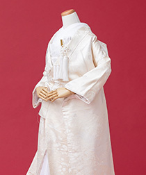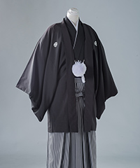 新郎様の衣装は、正式な婚礼の仕様である黒紋付袴(紋は白染め抜き)となります。
